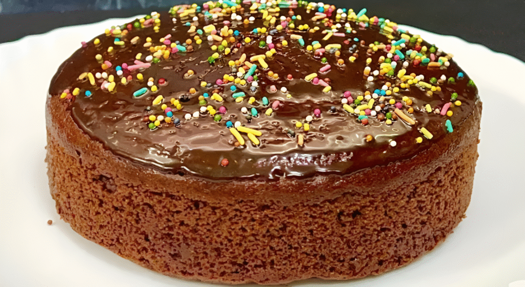 Your chocolate semolina cake is ready. It is soft, moist, and delicious. The best part is that it is made without maida, without eggs, and without an oven.