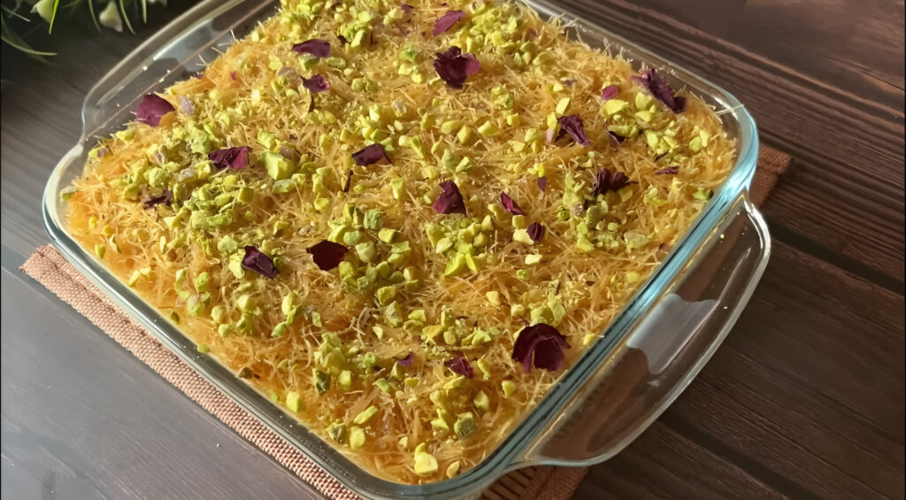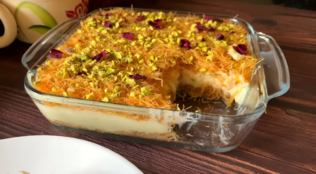 And here it is — our stunning homemade **Kunafa dessert** is ready to be served! Doesn’t it look just like a restaurant-style dessert?