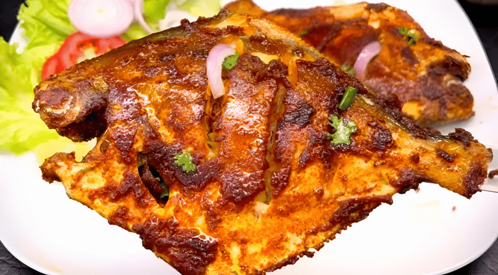 Today, we’re going to make a **delicious, spicy, and crispy Pomfret Fry** recipe. It’s very easy to make and can be prepared quickly. You can enjoy it with dal and rice, serve it with green chutney, or with onion rings. Let’s start the recipe right away!