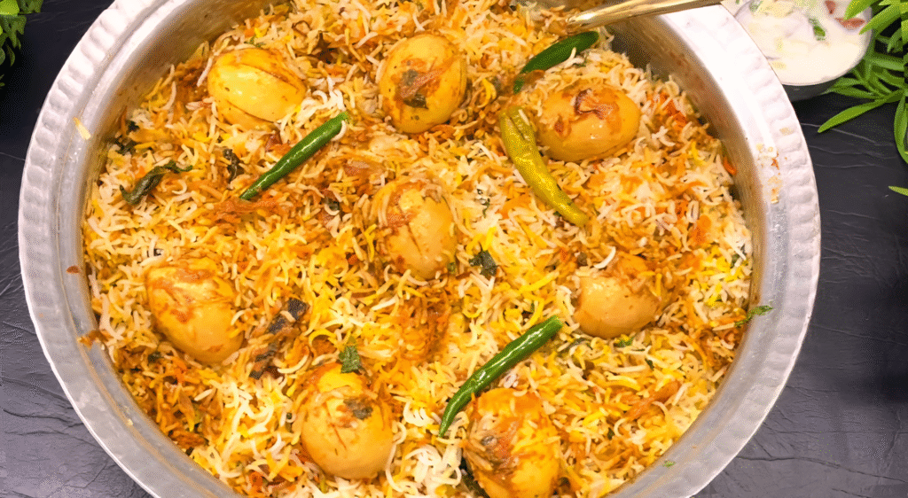 Your **Egg Biryani** is now ready! Serve it with **kachumber** (salad) or **raita**. This biryani is super aromatic, flavorful, and packed with spices.