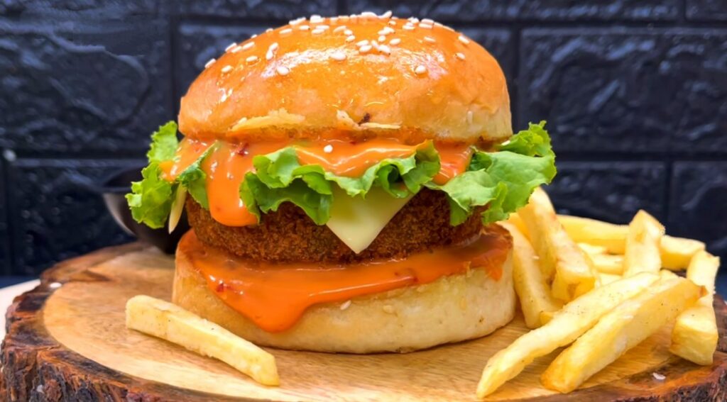 This burger will outshine any KFC or McDonald’s burger. It’s crispy, flavorful, and loved by both kids and adults alike.